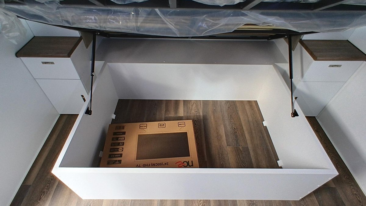 • 12V and USB sockets either side of bed and at dining table