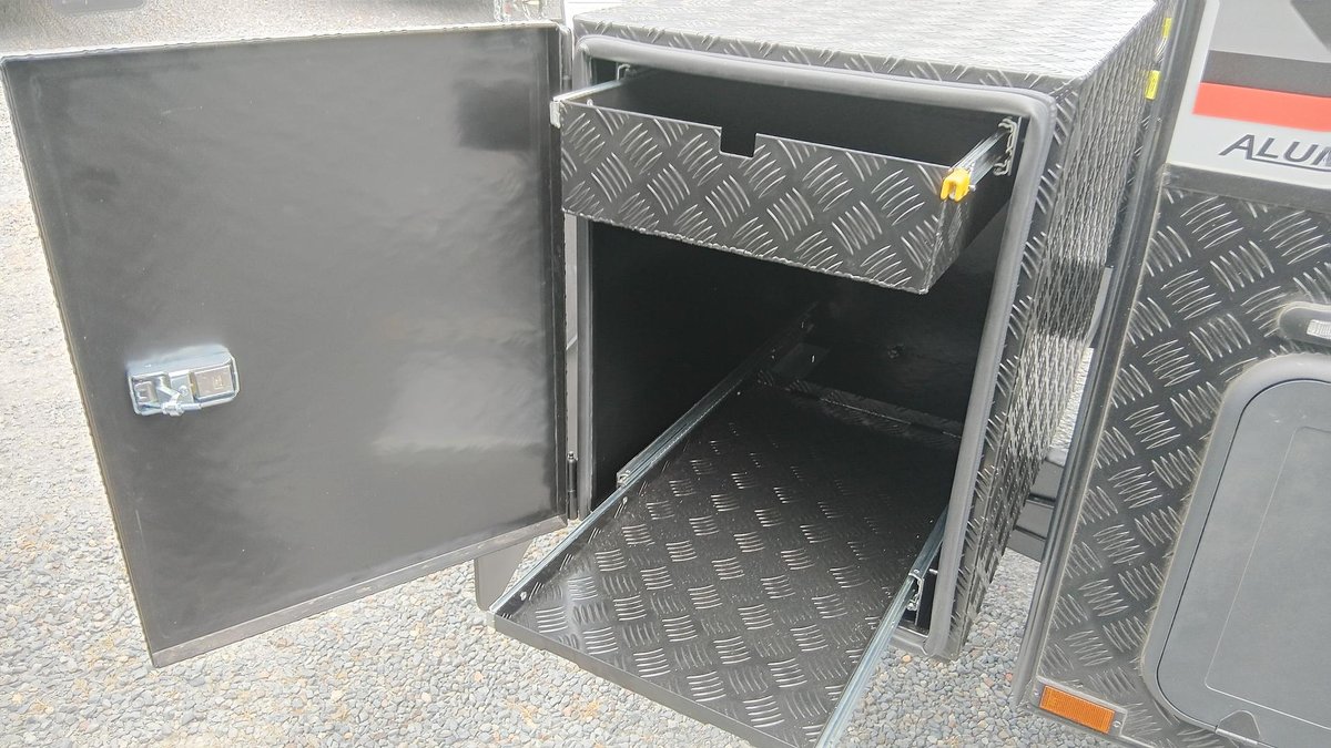 • 1 x Toolbox with slide for BBQ and slide out storage tray (door side)