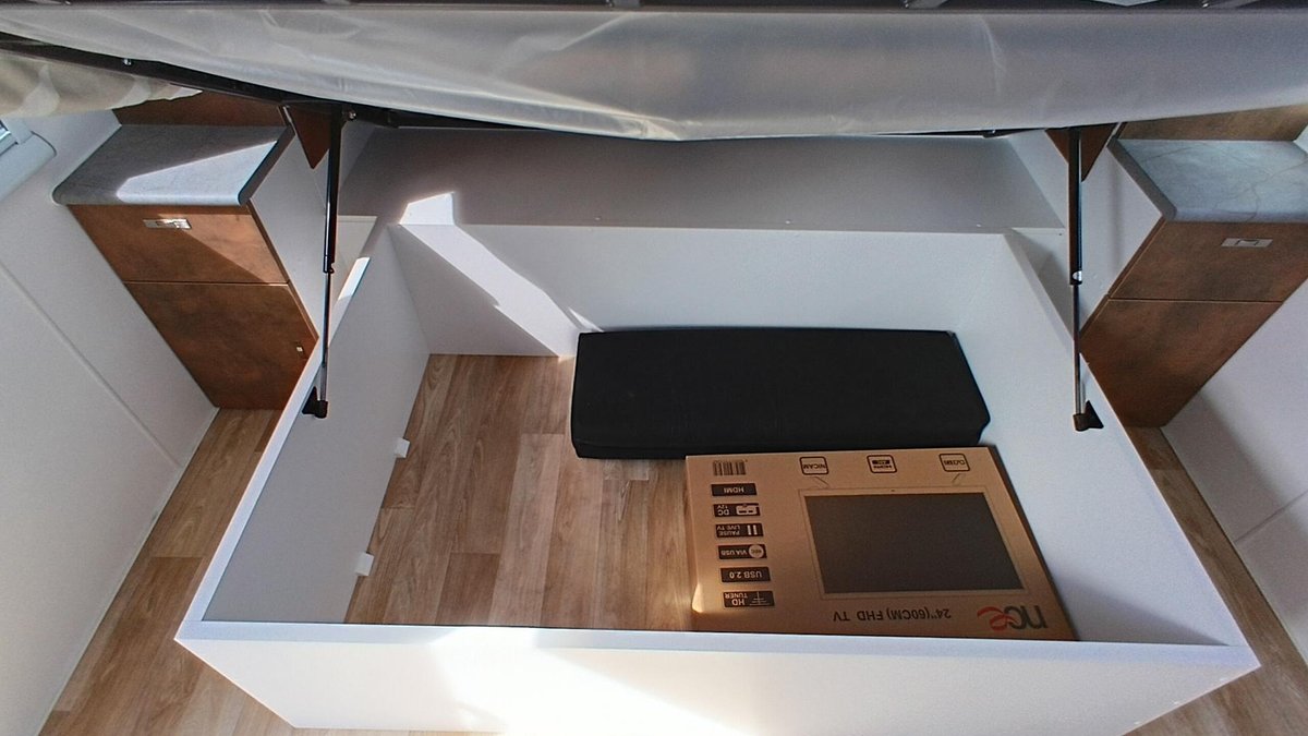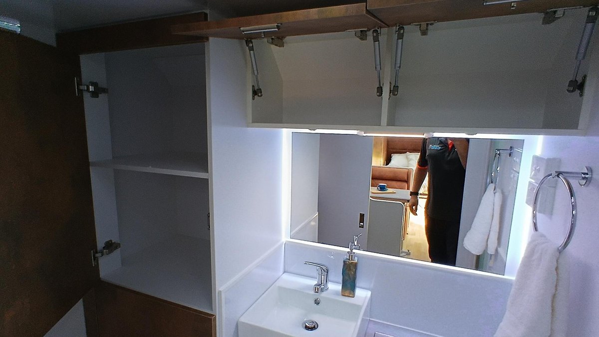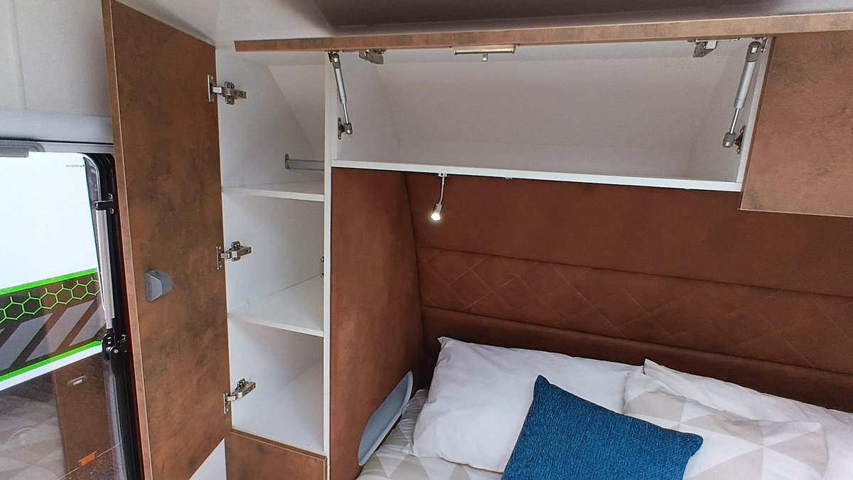 • 12V and USB sockets either side of bed and at dining table