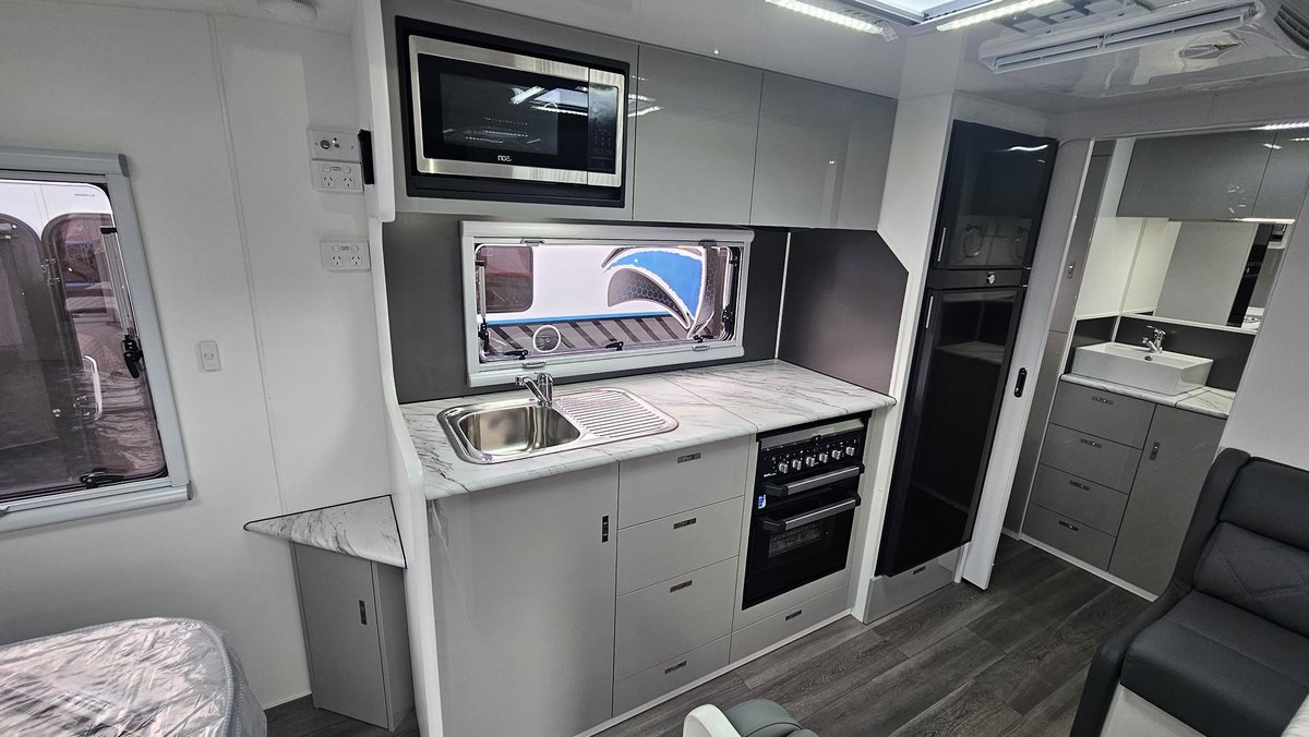 The Newell + model of Red Centre Caravans is the first of their off road caravan, it is for customers who are happy going to caravan parks but want to extend themselves further from time to time with some free camping and corrugated roads.