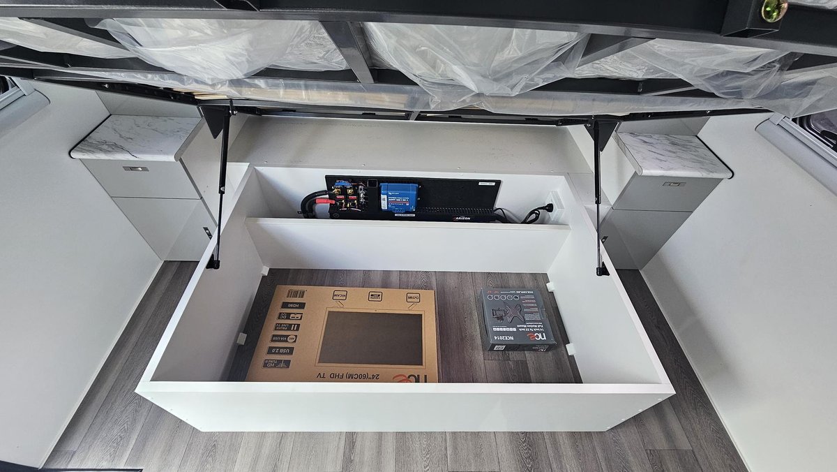 • 12V USB sockets either side of bed and at dining table