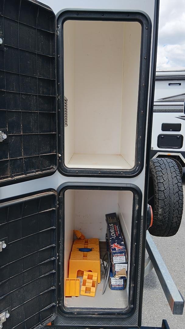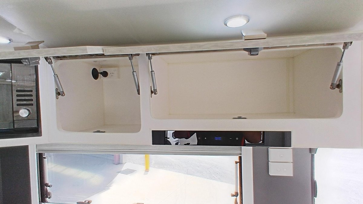 * Contains a linen cupboard, oversized drawer and cupboard faces, 2 x 9kg gas bottles, a reverse camera, a pull-out step, and a pressure hatch.
