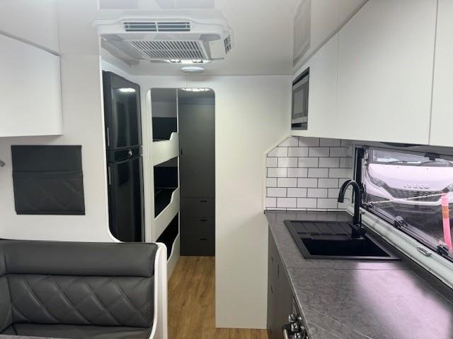 Here is your opportunity to purchase the top of the Range OASIS Red Centre Family Van. This van is in immaculate condition and is just over 12 months old. It is a very Spacious with 3 Bunks a Queen size Caravan Bed and an L shape lounge which folded down becomes another Bed. There is ample storage both inside and out, has the convenience of Air Bag Suspension which makes levelling up on some awkward sites a breeze. The BBQ box at the front of the Van has 2 Slide out Shelves which will hold your Weber BBQ and Utensils and condiments. Internally there is a full ensuite and separate Toilet with Wash Basin. In the Kitchen we have a Combo Cooktop, Oven & Grill. Compressor 225L Fridge Freezer, Microwave, Reverse Cycle Air Con & Diesel Heater. Electrical, we have an Inverter, Solar Power, DC To Dc, Battery Management System for your off-grid camping power requirements. We have 2 x 95L water Tanks a separate Filtered Drinking water Tap and a Grey water tank. There is a Carafan Dust Reduction system to keep your Van dust free on those open dusty Roads. For those who want some winter comfort the Van is equipped with a Diesel Heater for those colder Climates.